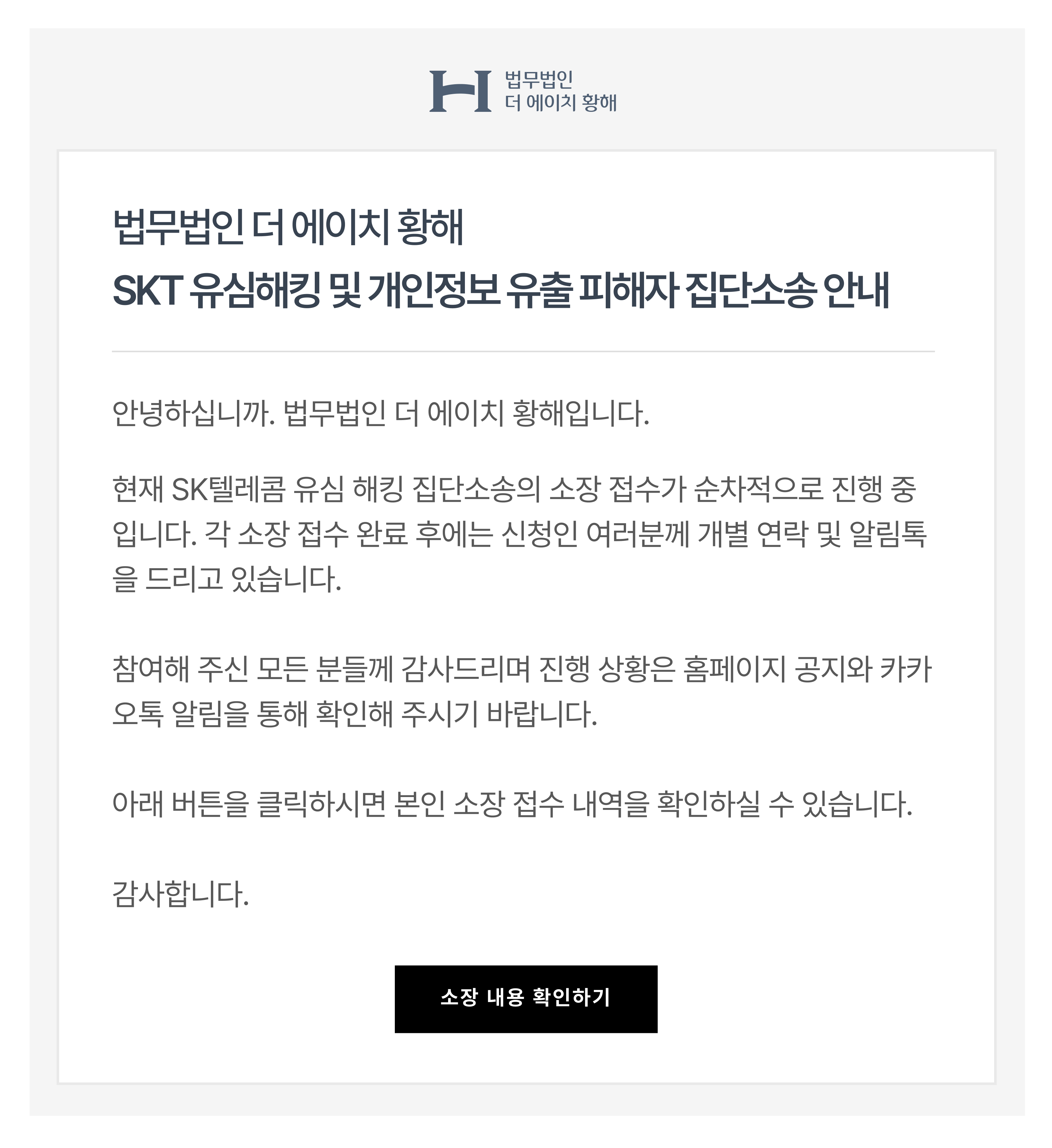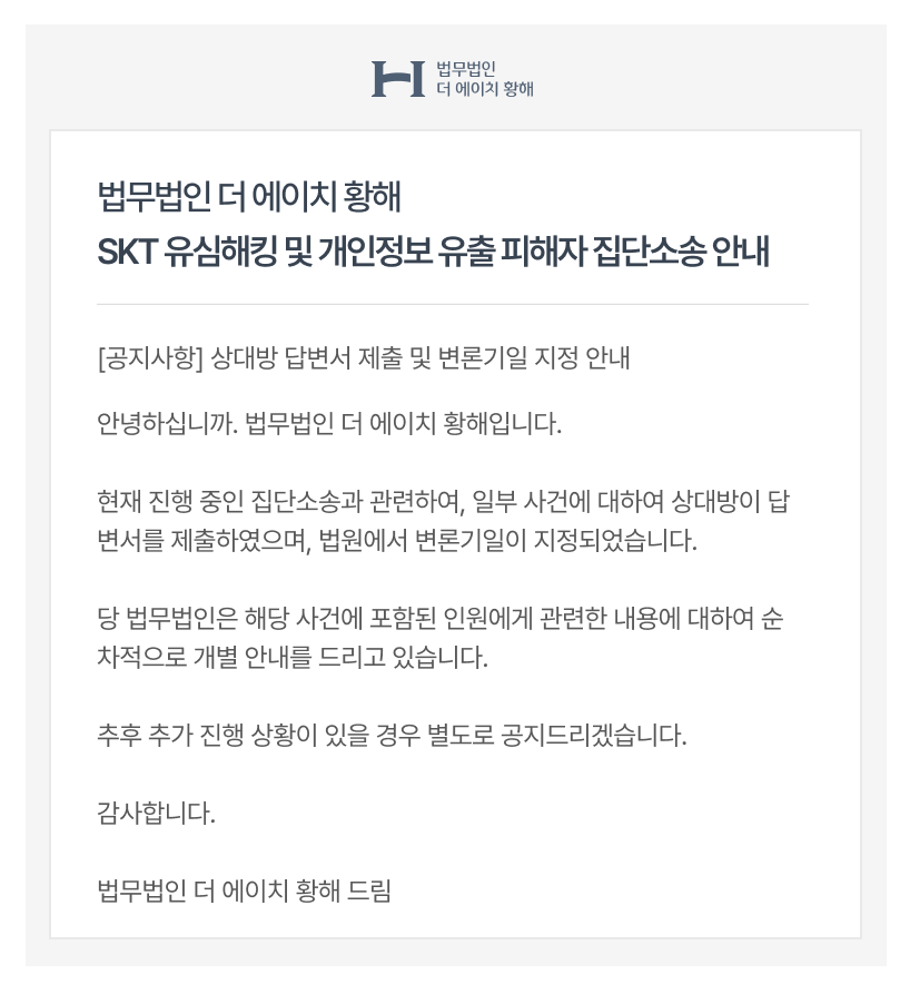 SKT 유심 해킹 피해 집단소송 접수 마감 안내